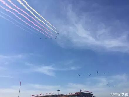 分列式开始,《团结就是力量》的歌曲声中,飞机来了!