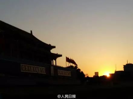 今日清晨的北京。旭日东升,迎着第一缕阳光,城市就要醒来。