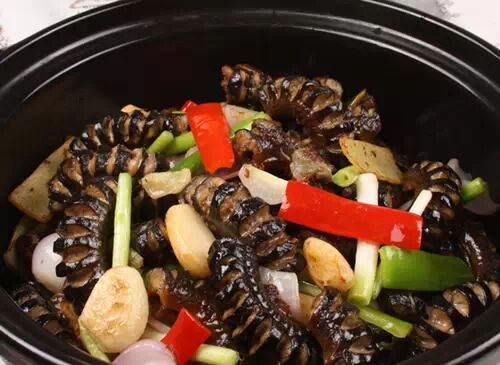 6.黄鳝煸炒变色了加入咸肉煸炒至咸肉略出油时加入黄酒