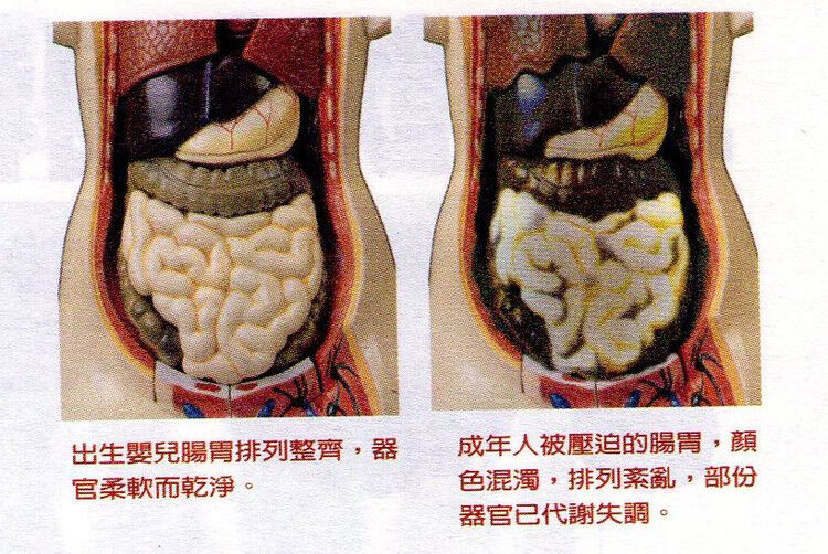 即使你体内有满满的宿便,你可能也不曾察觉。它会撑大你的小腹,并压迫内脏,改变腹部及脊椎形状,更是产生肥胖的重要因素。相信大家常看到四五十多岁的男性朋友小腹撑起,怎么减也减不下来吧,这类的人,小肠中至少藏有 十公斤 左右的宿便,真可谓是「宿便男」、「大便爸爸」或是「便便人」!