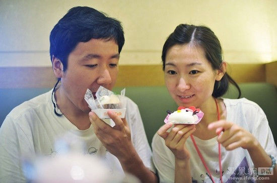 2013年7月23日,怀孕第60天,juju和老公在同一天生日,同时这也是两人结婚四周年纪念日,为了给孩子攒奶粉钱,两人随便在餐馆吃了顿饭,然后去蛋糕店买了两块小蛋糕。