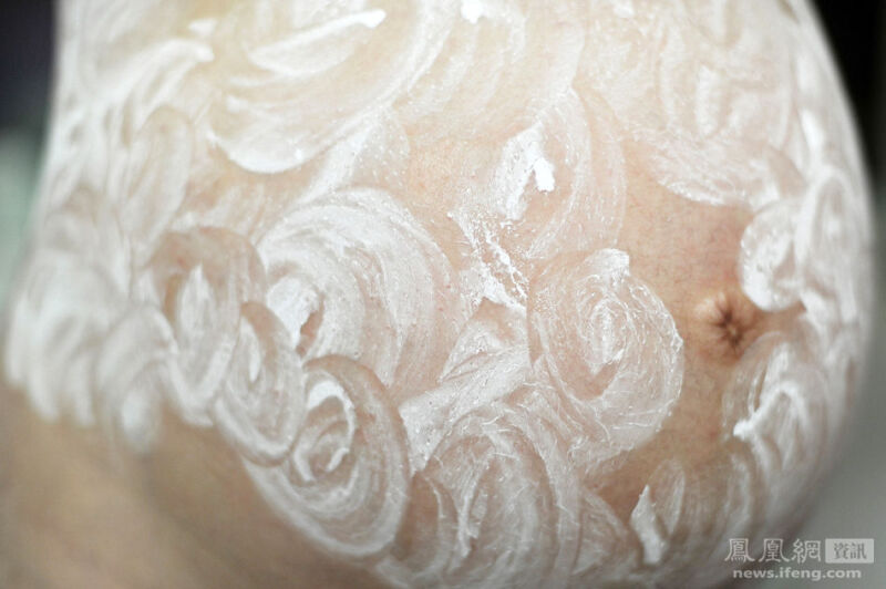 2013年10月10日,怀孕第139天,juju肚子上涂的炉甘石像梵高的天空。