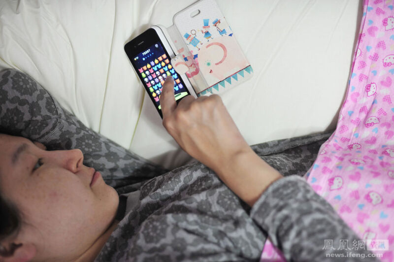 2013年10月22日,怀孕第153天,juju躺在床上玩天天爱消除,最近她的得分屡屡排名第一。