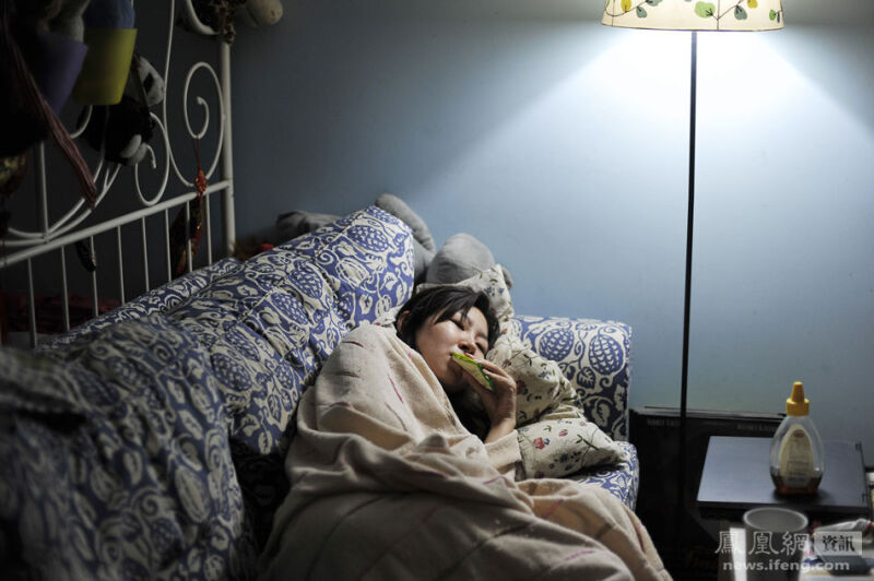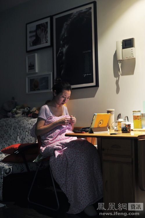 2013年10月1日,怀孕第130天,juju在床头补衣服。
