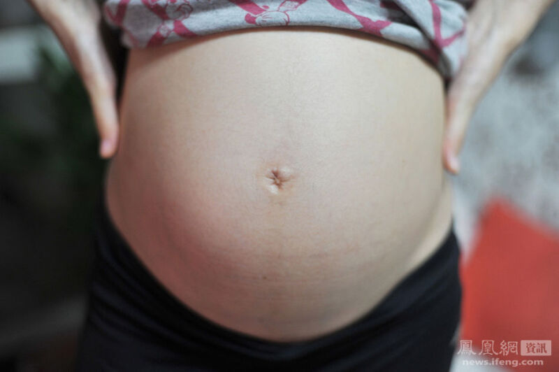 2013年9月21日,怀孕第120天,juju的肚脐眼就快鼓出来了。