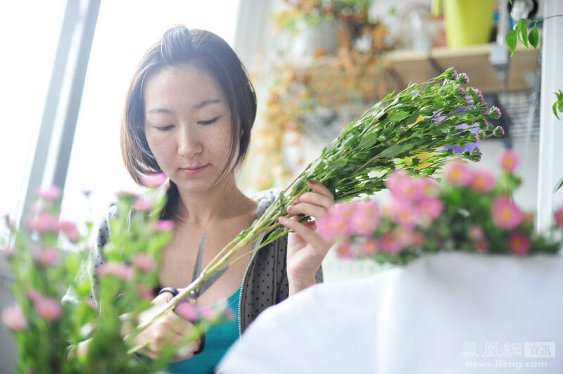 2013年8月14日,怀孕第82天,juju修剪老公买回来的雏菊。