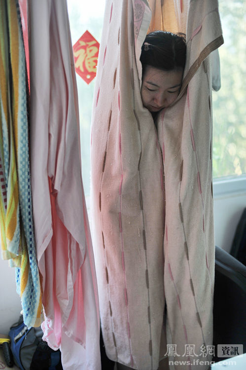 2013年7月28日,怀孕第65天,第二天老公要去西安出两天差,傍晚时juju闹小情绪躲进晾晒的床单里。