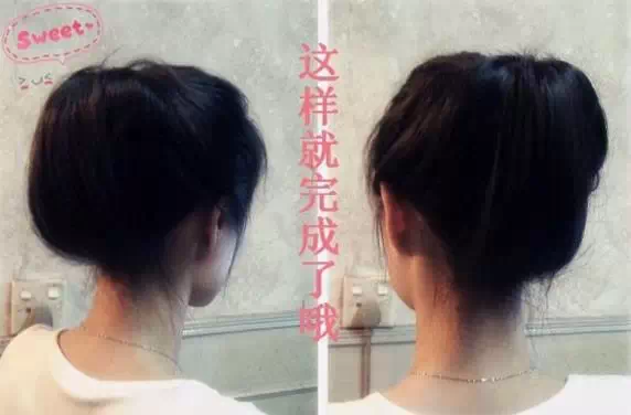 1.只要侧边扎个马尾不要整条辫子穿过橡皮筋是重点