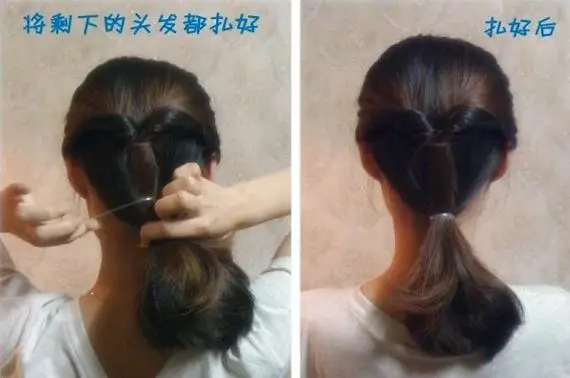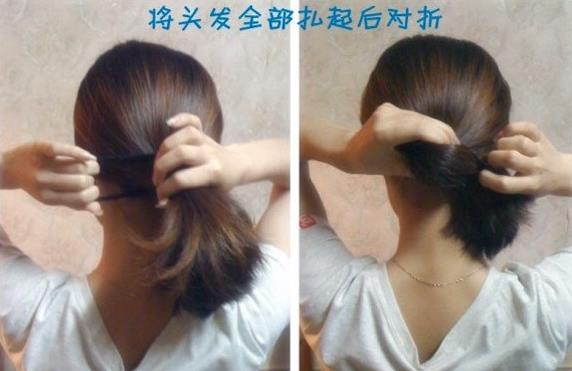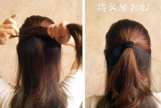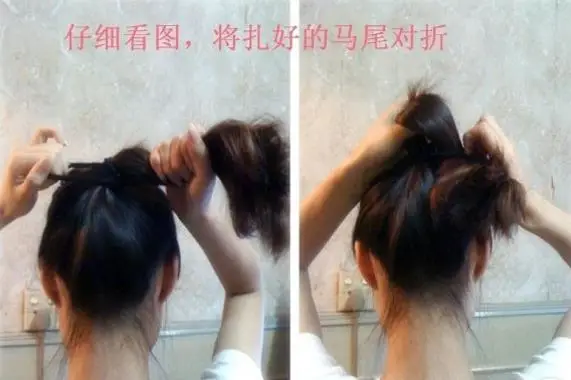 4将下面剩下的头发扎成马尾后对折