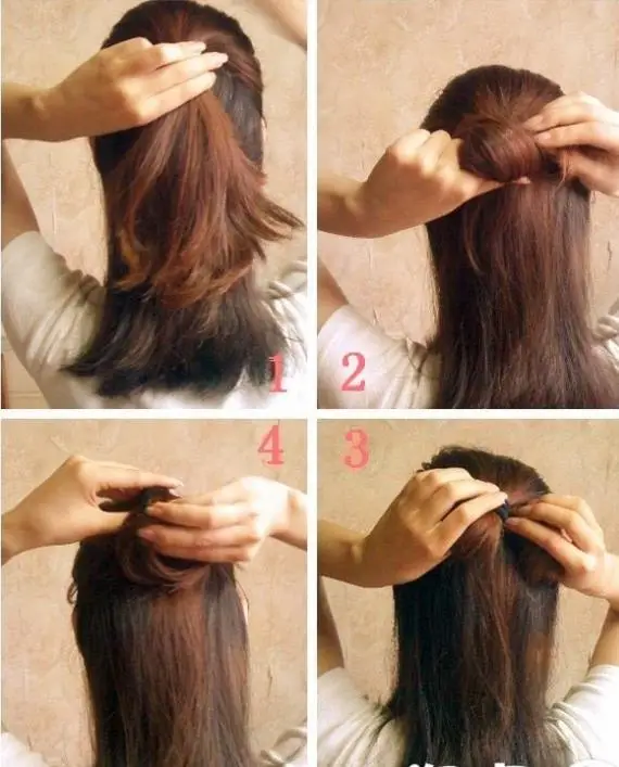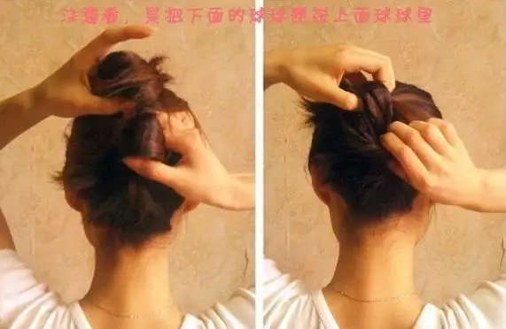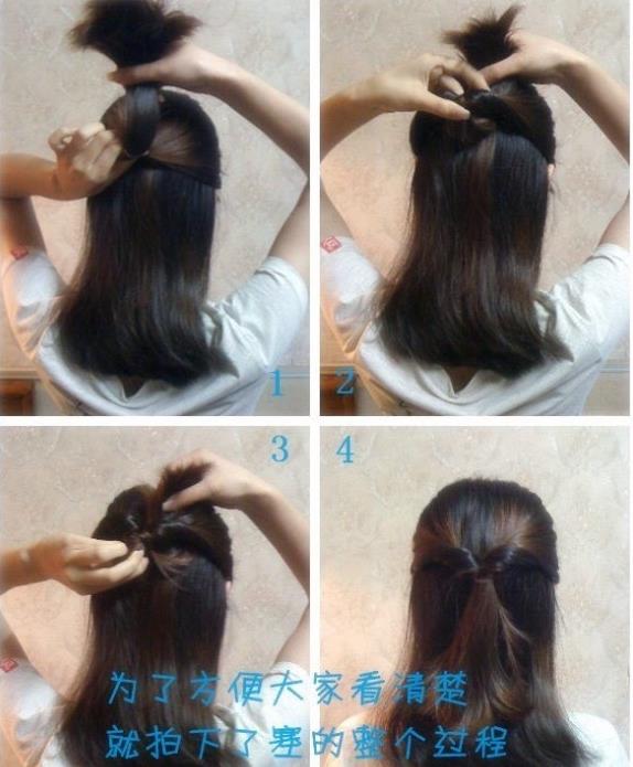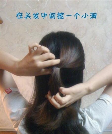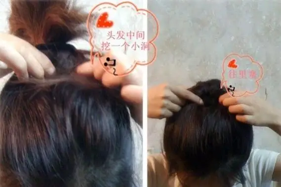 4大家看清楚了吗?把扎好的头发都往洞里塞