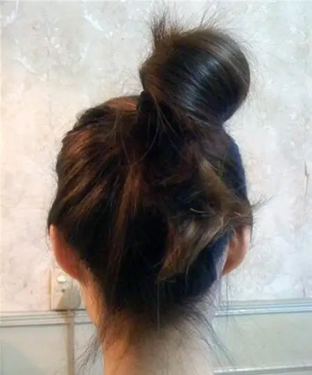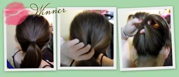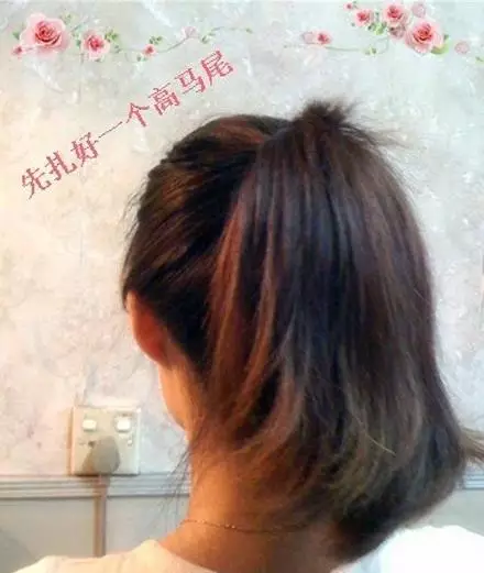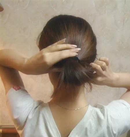 将扎好的马尾拿起,卷成小圆球后塞进发根处