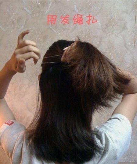 5将留在上面的备用头发也扎成一步一样