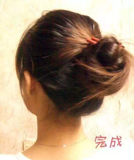 6最后一步注意啦,是将下面扎好的头发塞进上面的圈圈里