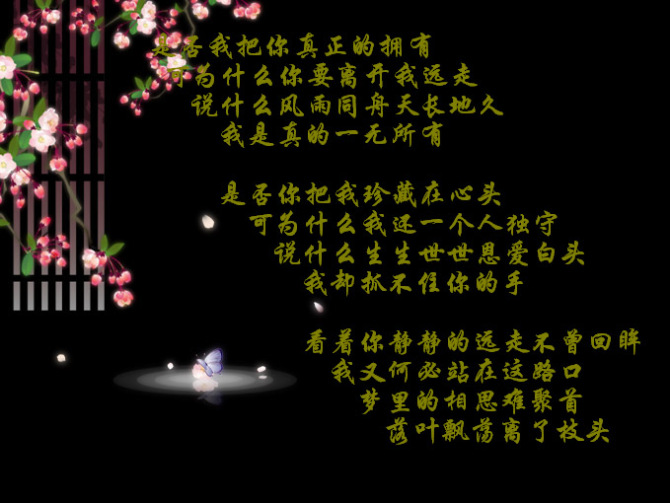 人这辈子会有很多经历,但缘分是最重要的,可很多人还是只有缘却没有份,这是世界上最遗憾的事.人有很多感情回忆,但那刻骨铭心的爱却是最难得的,有的人可能一辈子也没有过这种感情,所以,爱永远是我们不倦地追求的感情!爱是我们都追求的,但很多人并不懂什么是真正的爱,包括我也是在不断地领悟中……这是非常难的感情课题。