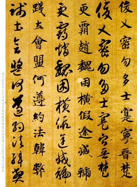 智永,生卒年不详。南朝陈、隋间人,名法极,晋王羲之七世孙,山阴(今浙江绍兴)永欣寺僧,世称“永禅师”。相传40年不下楼,书《千字文》八百余本,分送浙东各寺。退笔头置大笔簏中,簏受一石余,五簏皆满。唐张怀 《书断》评其书:“微尚有道之风,半得右军之肉,兼能诸体,于草最优。”北宋苏轼《东坡题跋》言:“永禅师书,骨气深稳,体兼众妙,精能之至,返造疏淡。