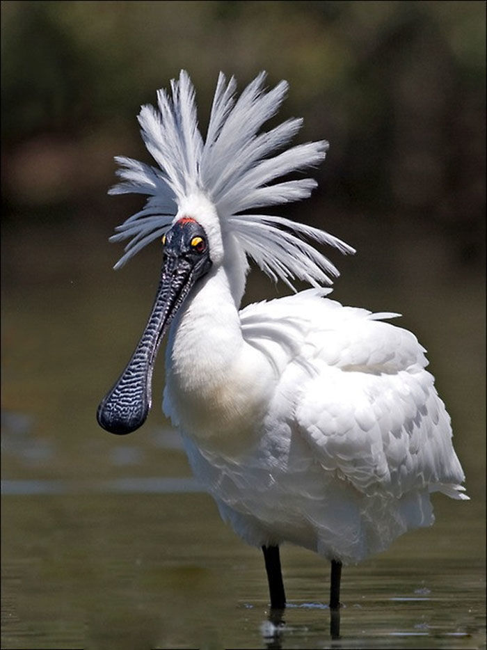 皇家琵鹭,脚很长,可以涉足到水中。它们将喙放入水中,以鱼类、贝类、蟹及两栖类为食物。