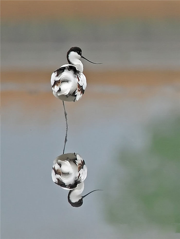 反嘴鹬,是不是很优雅?善游泳,能在水中倒立。飞行时不停地快速振翼并做长距离滑翔。成鸟做佯装断翅状的表演以将捕食者从幼鸟身边引开。进食时嘴向两边扫动。