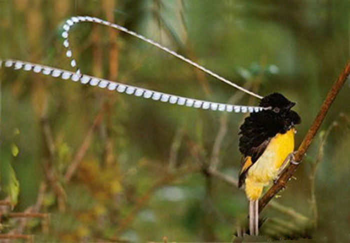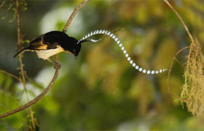 萨克森风鸟,它们成体的体长只有22 cm左右,但是那对“长错地方的”饰羽却足有50 cm长——这也让萨克森风鸟成为了最引人入胜的生物之一。