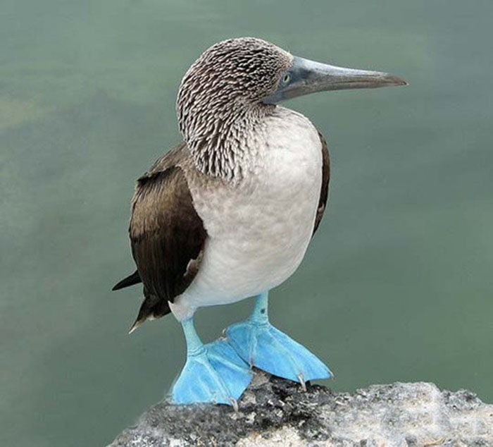 蓝脚鲣鸟,又叫结巴鸟,是一种大型的热带海鸟,蓝脚鲣鸟长着一双蓝色的脚蹼,这种蓝脚鲣鸟分布在从美国南加利福尼亚到秘鲁北面的太平洋地区.