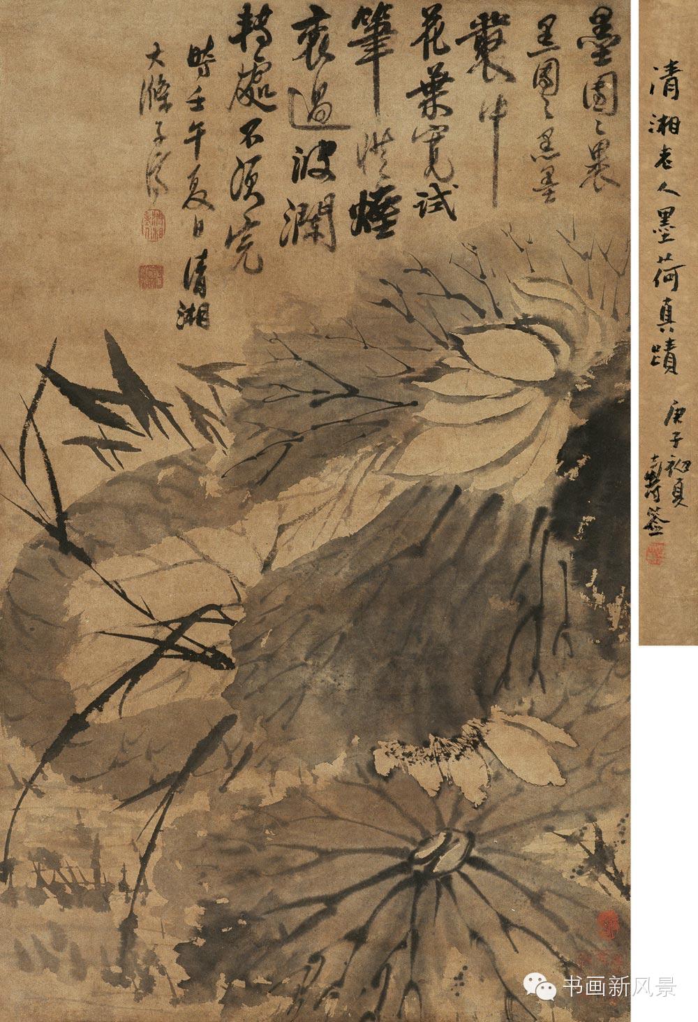 他谈到古人有有笔有墨者、有有笔无墨者、亦有有墨无笔者等等情况,这并非由于山川对象有这些局限,而缘于作者自身的秉赋及感受之差异(赋受不齐也)。“墨之溅笔也以灵,笔之运墨也以神。墨非蒙养不灵,笔非生活不神”。——这“蒙养”何所指,参阅石涛自己的题画解释:“写画一道,须知有蒙养。蒙者因太古无法,养者因太朴不散。不散,所养者;无法,而蒙也。未曾受墨,先思其蒙;既而操笔,复审其养。思其蒙而审其养,自能开蒙而全古,自能尽变而无法,自归于蒙养之道矣。”看来蒙养是指在混沌无法中创自家之法,仍是一画之说的同一概念(但石涛在别处也用蒙养一词,则似另有含义)。这“生活”应是指复杂多样的万象形态。石涛并不用指画或别的什么替代笔的工具,则其墨也都是通过笔再落到画面,所谓墨之溅笔其实是笔之溅墨,不过这类用笔纵横涂抹,更浸染于画趣而较远离于书法骨架,也似乎更凭借于一时灵感及偶然效果,当然其中蕴藏着长期的修养。我想这便是“墨之溅笔也以灵”及“墨非蒙养不灵”的实践经验。至于“笔非生活不神”则是指表现形象靠用笔,形象的丰富性也取决于用笔的多样性。他进而重复阐明“能受蒙养之灵而不解生活之神,是有墨无笔也。能受生活之神而不变蒙养之灵,是有笔无墨也。”我感到这样区分笔墨效果是偏于生硬了,其实石涛自己的作品浑然一体也不宜将笔墨之优劣拆开来评比。然而,他这章的论点是指用笔构造形象,用墨渲染气氛。