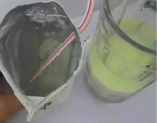 先在桌子上准备了一杯的牛奶,我们知道牛奶里是含有大量蛋白质的。然后我们还准备了这个柿子,我们不妨试一下,先把这个柿子呢,取一些,放进这个玻璃杯里。刚才咱们说的那个小女孩呢,就是吃完柿子之后,喝了很多的牛奶,也就是这个鞣酸跟蛋白质结合了以后,我的QQ是984867663喜欢护肤,养生,喜欢情感日志,美食 护肤 ,化妆技巧,教育孩子相关知识的朋友可以加一下。注意,我们其实还需要一点柿子皮,因为刚才也强调了,柿子皮里含有的鞣酸其实是最多的,那么现在我们再把牛奶兑进去搅一搅。大家注意看,其实特别明显,在这个玻璃杯的杯壁上我们就看到了很多的这种结晶似的小颗粒,就是很多的凝结物。