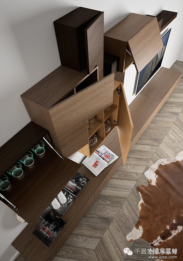 致力于湖口家具服务,为客户提供专业家具配置建议方案并家具订购服务,搭建家具厂商和客户之间的桥梁,一切以服务客户为原则,让客户拿到实惠满意的家具 DSIGNIO设计的创意电视挂柜,呈不规则的立体几何造型,仿佛大理石雕塑一般,非常适合安装在简洁时尚家居空间。每个小柜子都带有开门设计,既整齐美观又可以防止灰尘进入,减少清洁工作量。