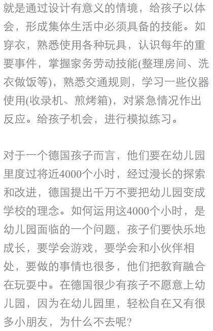 德国幼儿教育强调两个方面