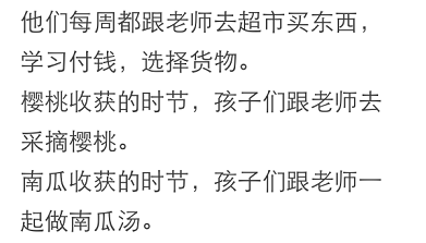 真心希望国内教育能够以孩子的需求为基础,把幼儿园办成一个孩童自由玩耍的地方,把学校和幼儿园区分开来。说到底,幼儿园应该是孩子们快乐玩耍的地方,过早地开始文化学习,孩子们的童年就被过早地剥夺了。