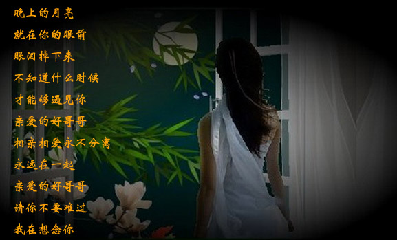 [B][ft=#cc0033,5,仿宋_gb2312]小弟上午好;走到你温馨可爱的小屋,[/ft][/B] [B][ft=#cc0033,5,仿宋_gb2312]欣赏你亲爱的好哥哥,让我陶醉音乐之中。[/ft][/B]