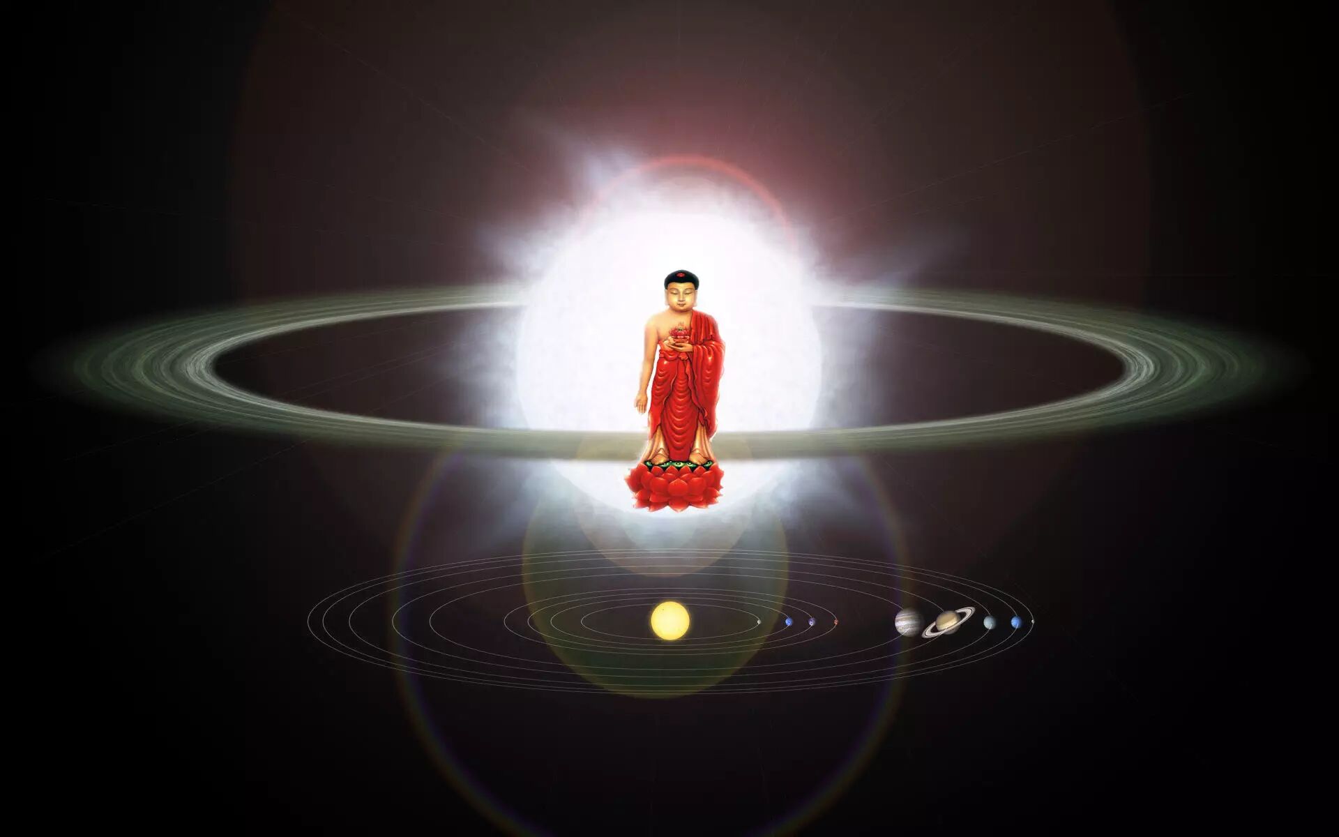 在经典中,有人问佛,世尊为何在娑婆世界这个脏地方成佛?佛说:你看到娑婆世界脏,只是看到了一面,它还有另外一面,与西方极乐世界及一切净土一样的光明清净。所以佛立刻就现了神通,以足指按地,当时就现出了这个世界的光明面。这里是个话头,这个世界有很清净的光明面,同极乐世界一样,以及其他佛世界一样的清净光明。
