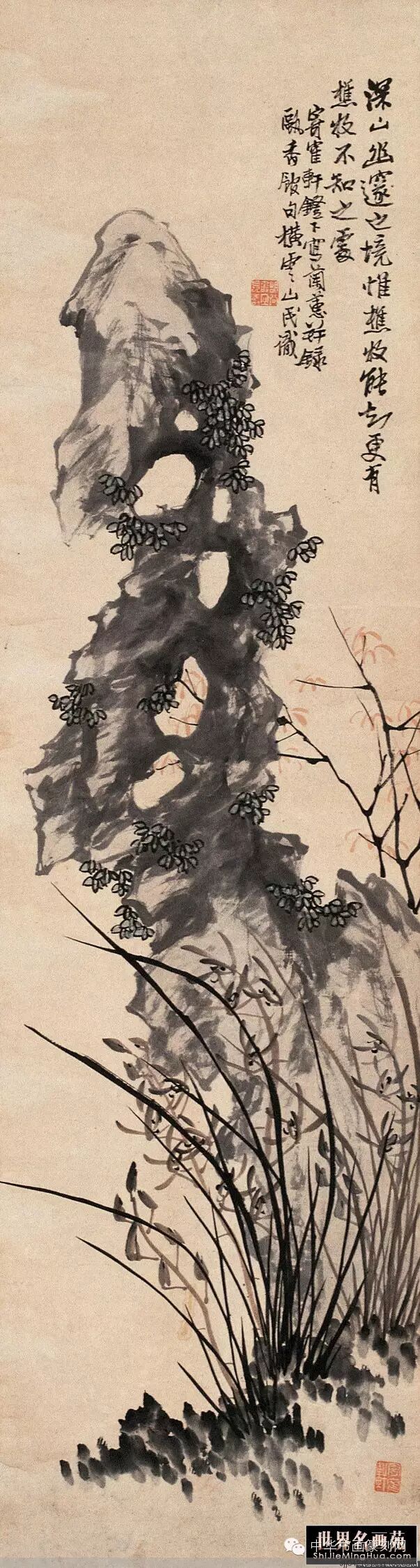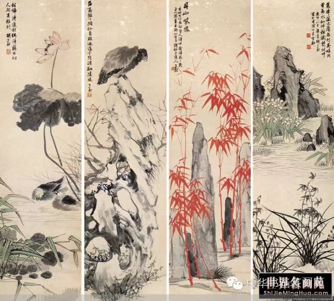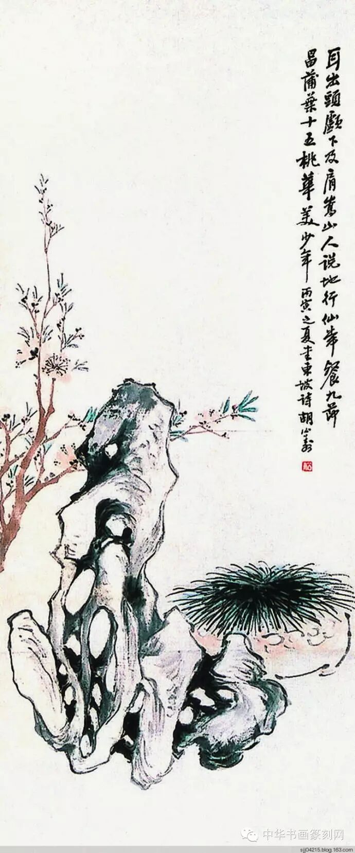 画山水画要画石头,而画花鸟画也离不开石头。一幅好的花鸟画往往需要有恰倒好处的石头相配,犹如红花和绿叶一样,可谓互相依存,相辅相成,相得益彰。但山水画和花鸟画是两个不同的画种,画石头的方法也就千差万别,有着各自的艺术手法。今转贴的这些名家花鸟画,多为清人胡公寿所作,或与他人合作由他补石,或突出花鸟,或突出石头,但都是构图精妙,画面清新,可谓珠联璧合,天衣无缝,值得借鉴参考!