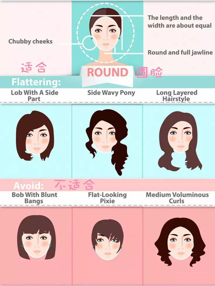 其实真正的圆脸是很可爱哒,脸部没有什么棱角,还可以减龄呢~发型的重点是要把脸部线条拉长,所以齐刘海绝对是禁区!虽然齐刘海自带卖萌属性,但是一定会看上去更加短更加圆~