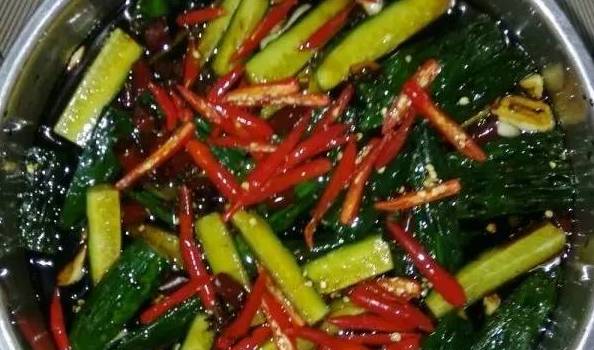 方法:酱油烧开晾凉,黄瓜用盐淹16小时后,再用重物压10小时。辣椒切块,姜蒜拍碎切块,和其他料一起放入酱油内即可。