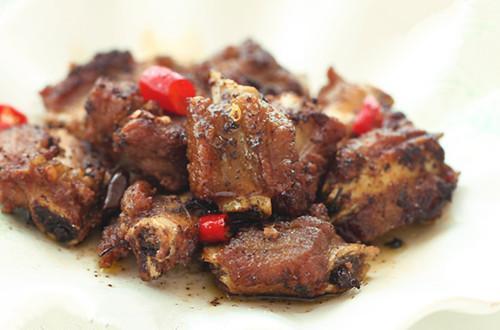 猪小排600克、葱2段、姜1块、干辣椒3个、料酒20毫升、植物油200毫升、白糖8克、椒盐4克、食盐2克