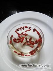 枸杞用水泡浸一下,先干净。