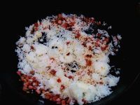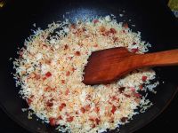 7.放入叉烧粒翻炒至有少许焦黄