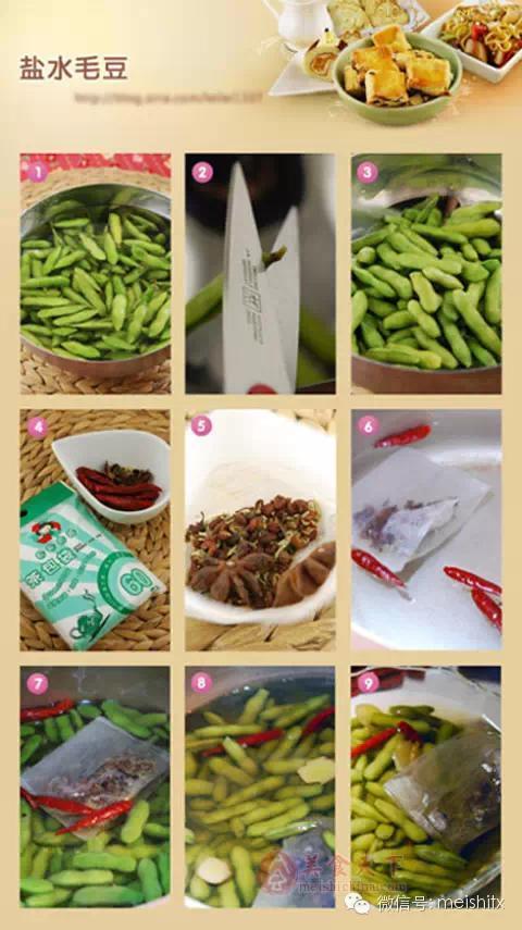 出镜率最高的凉拌菜——手撕茄子(如何调配凉拌汁) 从小就特别爱吃茄子,可茄子一直是我的死穴,每次拍出来都惨不忍睹,以至从来就没发表过一篇博文。这次却很幸运,拍出来美美的,茄皮也长脸,还带着那抹紫。 天气热了,我爱做凉拌菜,一来非常简单,二来解暑开胃,手撕茄子算是夏季我家出镜率最高的凉拌菜之一,茄子用凉拌的方式来烹制,味道是非常赞。 朋友都喜欢我做的凉拌菜,凉拌菜的灵魂关键在于那碗凉拌汁。今天就以手撕茄子为例,细聊凉拌菜要注意哪些关键点,如何调配凉拌汁,只要细心掌握,包你能做出美味可口的凉拌菜。 1、食材要新鲜,一定要清洗干净;器皿、洗切物件最好用开水烫过。 2、凉拌菜最好切成均匀的大小,以便充分均匀地吸收凉拌汁。 3、酱油和香醋的比例是2:1,也就是2汤匙酱油,1汤匙香醋,以此类推,香醋还有杀菌的作用。 4、大蒜最好用压蒜器压成泥,这种方式比用刀切末味道更浓郁。一定要添加蒜泥,蒜泥有杀菌功效哦。 5、最好用自制的辣椒油,香辣味十足,再加入几滴芝麻油,香味更浓郁。 6、如果食材水分较多,可以先用盐腌一会,再把水倒掉,这样食材的口感会变得更爽脆。 7、焯烫过的菜,一定要过凉,再沥干水分,这样才能保持脆感。 8、有的食材,可以适当添加香菜或葱花,以增加凉拌菜的风味。 【材料】茄子2条、香菜2-3根、蒜1个、指天椒6粒 【调料】酱油4汤匙、香醋2汤匙、盐1茶匙、鸡精1茶匙、芝麻油几滴、自制辣椒油适量 【做法】 1、主材料备好。 2、茄子去头去尾,放入蒸锅大火蒸熟。 3、这时我们可以准备凉拌调料,指天椒切圈,蒜压成泥,香菜切末,酱油4汤匙、香醋2汤匙、盐1茶匙、鸡精1茶匙、芝麻油几滴、自制辣椒油适量,调配成凉拌汁。 4、茄子蒸软至用筷子能插入即可(要多插几个地方)。 5、将茄子拿出,撕开两半放入盘中放凉。 6、放凉后再撕成细长条。 7、然后撒入香菜末、辣椒圈和蒜泥,再淋入备好凉拌汁。 8、拌匀放置一会即可开吃。 家常凉拌菜------【拍黄瓜】 【所用料】 黄瓜、熟花生米、蒜蓉辣椒酱、糖、醋、蚝油、 【做法】 1、黄瓜洗净拍碎,放深点的盆中备用,花生米去外衣敲碎 2、依次放入糖、醋、蚝油、蒜蓉辣椒酱,拌均匀 3、盖上保鲜膜,放冰箱冷藏半小时以上 4、装盘后,撒些碎花生米即可 腐竹怎样吃才够劲儿:餐桌凉菜之抢手货的油泼黄瓜腐竹 腐竹是中国人很喜爱的一种传统食品,具有浓郁的豆香味,同时还有其他豆制品所不具备的独特口感。腐竹具有良好的健脑作用,它能预防老年痴呆症的发生。腐竹可以炒吃,凉拌,炖菜,做汤等等,我家比较习惯用来凉拌。今儿这个黄瓜拌腐竹的小凉菜是我家餐桌抢手货,我老公特别爱吃。每次吃都能吃一小盆,我看着架势怎么就跟没吃过似的呢?敢情还真没这么吃过,也太火星了。 那么拌腐竹怎么做才能更好吃更有味呢?光用盐、生抽,醋做调料拌吃还不能足以来的香。好吃的做法是一定要油泼辣椒才会飘香。油不需要多,辣椒和花椒也不需要多,都是一点点,但作用是大大的。 【原料】 干腐竹数根、黄瓜半根干辣椒2个、花椒5粒、生抽、盐、醋、白糖、味精、黑芝麻。 【做法】 1、腐竹掰成大段,放入碗中用水泡开(冬天温水夏天凉水)。有的腐竹比较难泡,因此我习惯泡隔夜。时间紧的话可以不泡隔夜泡3-5小时也行; 2、泡好的腐竹挤干水分,用刀斜着切成小段; 3、黄瓜洗净,约半根,喜欢吃的可以多放一些; 4、配合腐竹的菱形断,黄瓜也给切成菱形片; 5、用盐,生抽,醋,一点点白糖和味精调味拌匀; 6、干辣椒剪成断,和花椒一起放在凉菜上。锅中倒入少许油,烧约9成热,见冒白烟起锅,泼在干辣椒和花椒上,迅速拌匀,撒上少许黑芝麻装饰即可。 【透明提示】 1、腐竹不要为了泡的快就用热水泡,用热水泡腐竹易碎。 2、白糖一点点,是为了提鲜,不放也可以。 3、配菜可以换成其他的,木耳也很不错。 吃毛豆有余味消夏夜不可或缺的下酒菜:盐水煮毛豆 看了《媳妇的美好时代》印象最深的一句就是“吃毛豆有余味”。今天就借题来盘消夏夜不可或缺的下酒菜:五香水煮毛豆。 够家常,家常到几乎人人都会做。夏天约上几个朋友,来瓶冰啤加毛豆外加若干肉串,大家凑在一起畅想一下未来,聊聊生活,聊聊家常,诉诉苦,倒倒垃圾,朋友就是在平淡的生活中一剂调味剂。这也够惬意一晚的了。即便在家也是消暑纳凉的下酒小凉菜,或是看电视上微薄手边的小零食呐。 【原料】 毛豆一斤、干辣椒8个、花椒、八角、茴香、丁香、盐。 【做法】 1、买回来的毛豆要仔细清洗,我认为至少要4-5遍或者更多,先洗掉泥土,后洗掉浮毛; 2、用剪刀剪掉毛豆2头,虽然麻烦,但为了更好的效果,我觉得值。这样会比较好入味; 3、剪好的毛豆放入盆中备用; 4、准备好干辣椒8个,花椒,八角,茴香,丁香; 5、我用了超市买的茶包袋,这样把香料放到袋中,不会散在锅里; 6、锅中倒入清水,放入干料包和干辣椒。大火烧开; 7、水开后放入剪好角的毛豆,放入盐开锅后,中小火煮5分钟,时间不要太久; 8、5分钟过后关火,盖上盖子,用余温来焖毛豆; 9、焖好的毛豆带汤盛入碗中,盖上保鲜膜,放入冰箱冷藏一晚食用,味道更佳。 【友情提示】 1、干辣椒也可以直接放在茶包中。 2、我用的是茶包袋觉得大小正好,比炖肉的袋子小放在锅中不占地方,刚刚好。 3、煮好毛豆,焖的过程时间自行掌握。