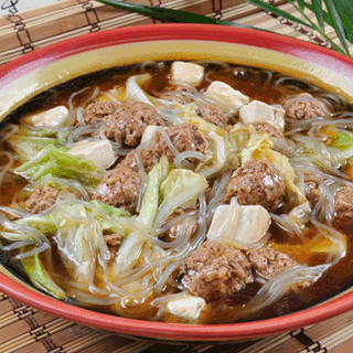 做法:在锅里加入开水,沸腾后加入白菜,豆腐,粉条,开锅后放入山珍丸。之后将调料混合后勾芡,浇入锅内。开锅即食。