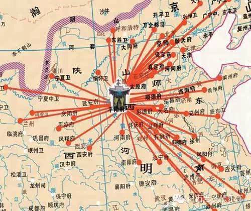 五、明朝大槐树移民在陕、甘、宁地区的分布: