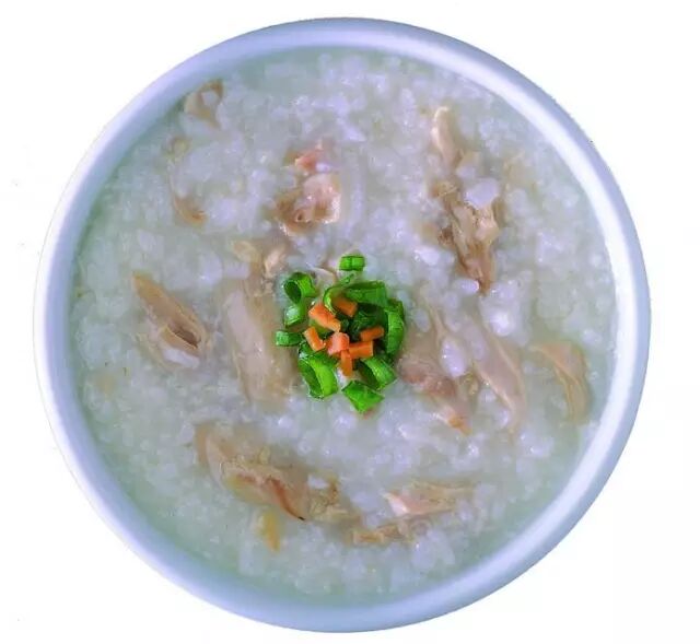 1、鸡胸肉切成细丝,用盐和油腌一会儿;煮白米粥,半熟时倒入鸡丝,搅匀了再煮;粥快好时,放些姜丝和其它调味绿色菜,加盐。起锅,喝。