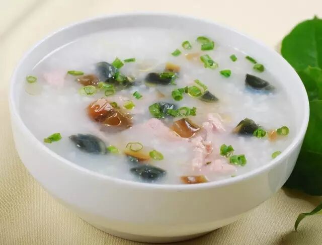主料:大米、里脊肉、皮蛋、青豌豆