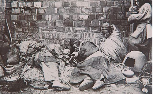 图:清末老照片,街角的一群吸食鸦片者