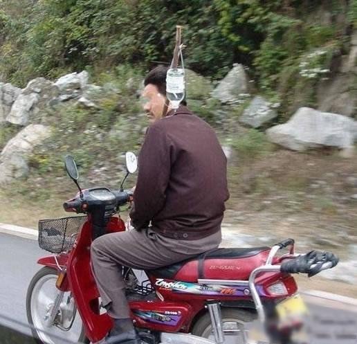 见过骑车的.见过打点滴的.没有见过骑车打点滴的牛人