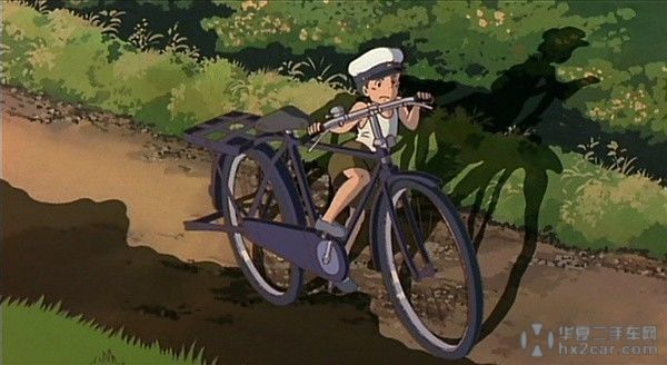 16.凤凰老牌大自行车比人还要高,右脚穿过三角形的车架,居然也能骑得那么熟练。
