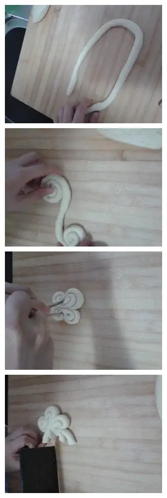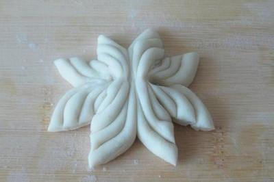 6.用刀把四个角切开,稍加整理旧好了和馒头一起上锅就好了。
