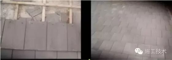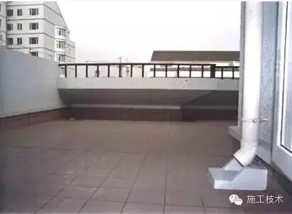 此种做法适用卷材防水上人屋面。在防水层表面铺摊水泥砂浆进行地砖铺贴,铺贴过程中注意屋面的排水坡向及坡度,雨水口处不得积水;创优工程要做到屋面流水坡向正确、无积水;饰面砖排砖整齐合理、无空鼓,砖缝顺直、宽窄一致;排水口、突出物等周边排砖整齐、美观。