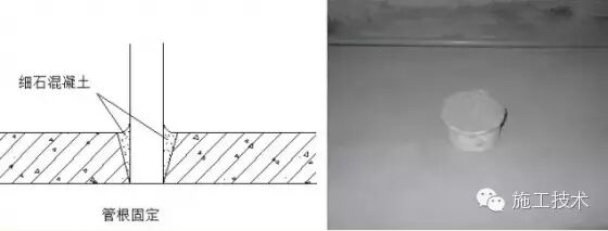 1 保温隔热工程——管根固定穿过屋面和墙面的管根部位,应用内掺3%膨胀剂的细石混凝土填塞密实,将管根固定。