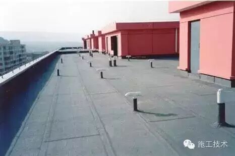 9 防水层——非上人屋面防水卷材保护层涂刷着色剂首先将防水层表面清擦干净,并要保证表面干燥,着色剂色调应柔和,颜色不能过重。卷材保护也可以直接用附有铝箔或石英颗粒的卷材直接作面层卷材,直接作为防水保护层。