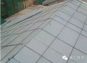 保温层设于防水层之上,上部为35mm(设计确定)厚C15细石混凝土找平层(配ø6@500mmX600mm钢筋网与屋面预留的钢筋固定)。