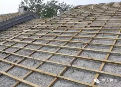 挂瓦采用方木,底层为顺水条,上层为挂瓦条,顺水条与挂瓦条形成整网与预埋在屋顶结构板上的ø6钢筋连接,挂瓦层方木均要进行防腐处理,还需用涂料将连接筋根部涂刷严密,以防腐防渗。